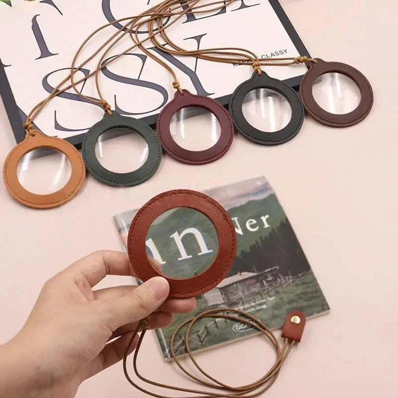 Our leather magnifying glass loupe necklace lets you read tiny text effortlessly. It's crafted to be lightweight and offers a ten-times bigger vision. Wear it around your neck as a chic accessory. No need for bulky glasses when you're out and about. Perfect for anyone who values both function and fashion. Available in six beautiful colors to match any outfit!